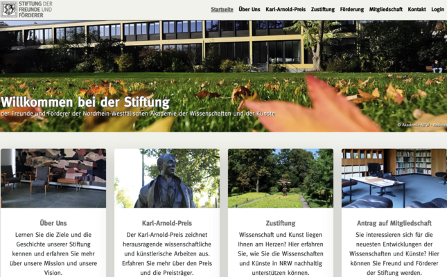 Die Stiftung der Freunde und Förderer der Nordrhein-Westfälischen Akademie der Wissenschaften und der Künste wurde im Jahr 1997 gegründet, um die Arbeit der Nordrhein-Westfälischen Akademie der Wissenschaften und der Künste zu unterstützen.